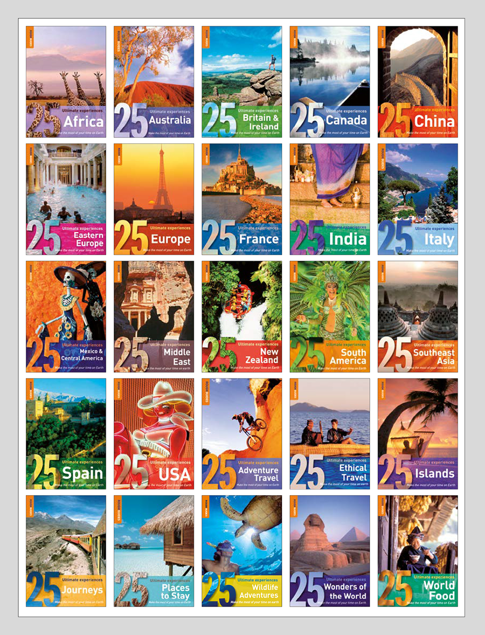 A series of 25 mini Rough Guides to celebrate the 25th anniversary of the guidebook publisher. I created the visual concept, art directed and commissioned designers to work on the series as well as designed four of the titles myself.